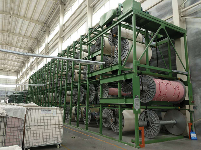 關鍵詞: 卷布機、織軸、機外大卷裝、電動液壓運輸車、穿筘車、分切機